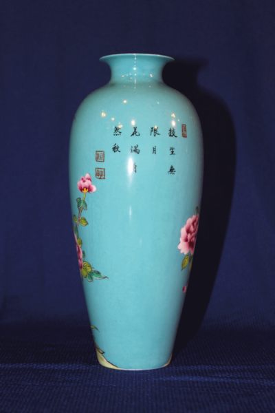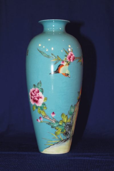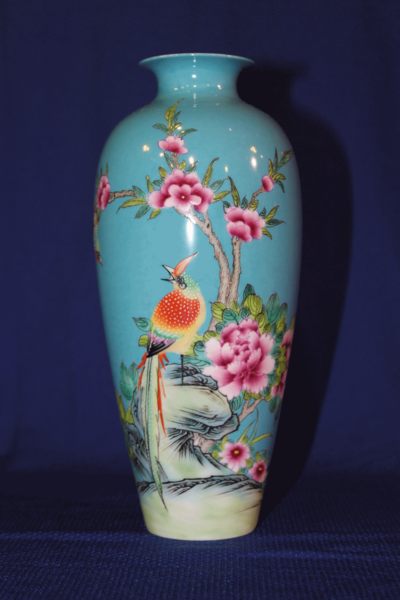 神鳥鳳凰與牡丹花描彩瓶